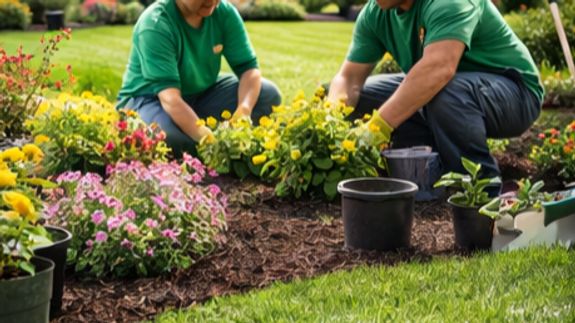 • Custom garden design and planting<br>• Mulching and soil conditioning<br>• Lawn maintenance and fertilization<br>• Seasonal flower arrangements<br>• Hardscape installation including patios and paths